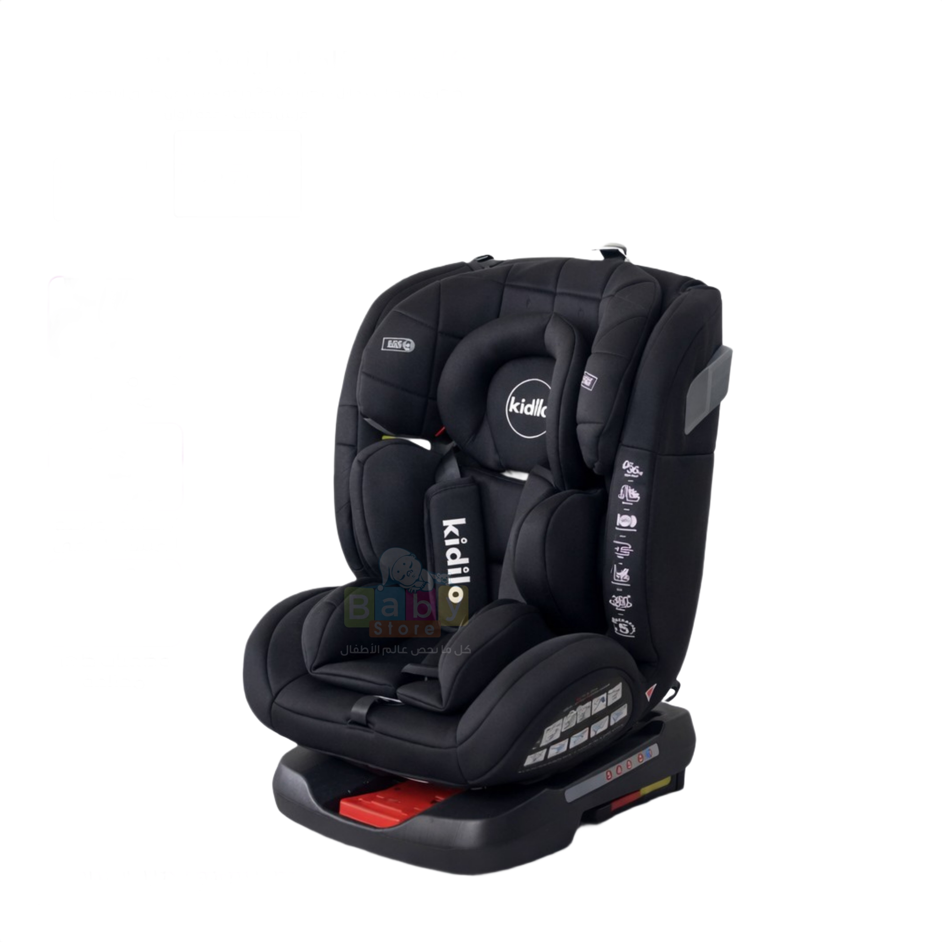 كارسيت Kidilo مع نظام Isofix ودوران 360 درجة لتسهيل إدخال وإخراج الطفل. يتميز بفرش طبقات مبطن مناسب لمختلف الأعمار، مع إمكانية تعديل الظهر ووضعيات النوم المختلفة. يوفر أعلى درجات الأمان والراحة أثناء السفر، مناسب للاستخدام الطويل داخل السيارة.