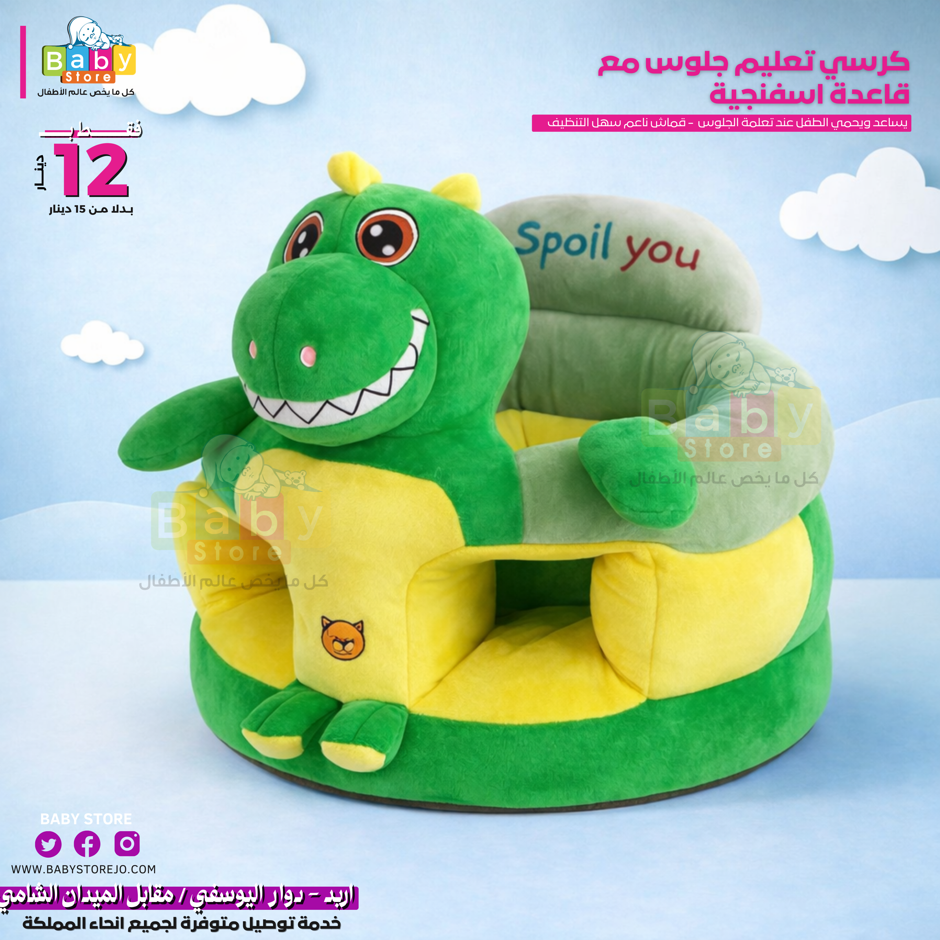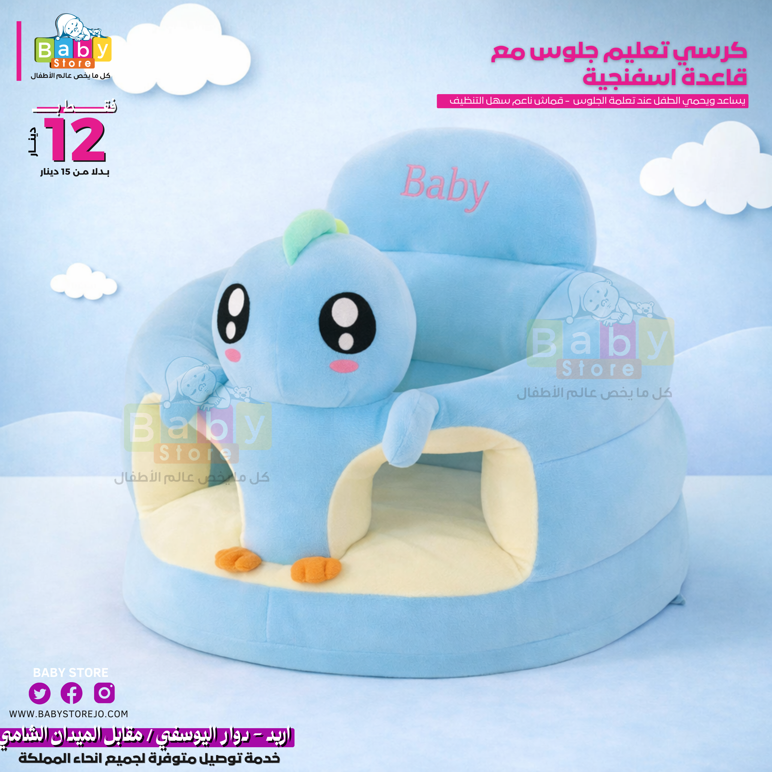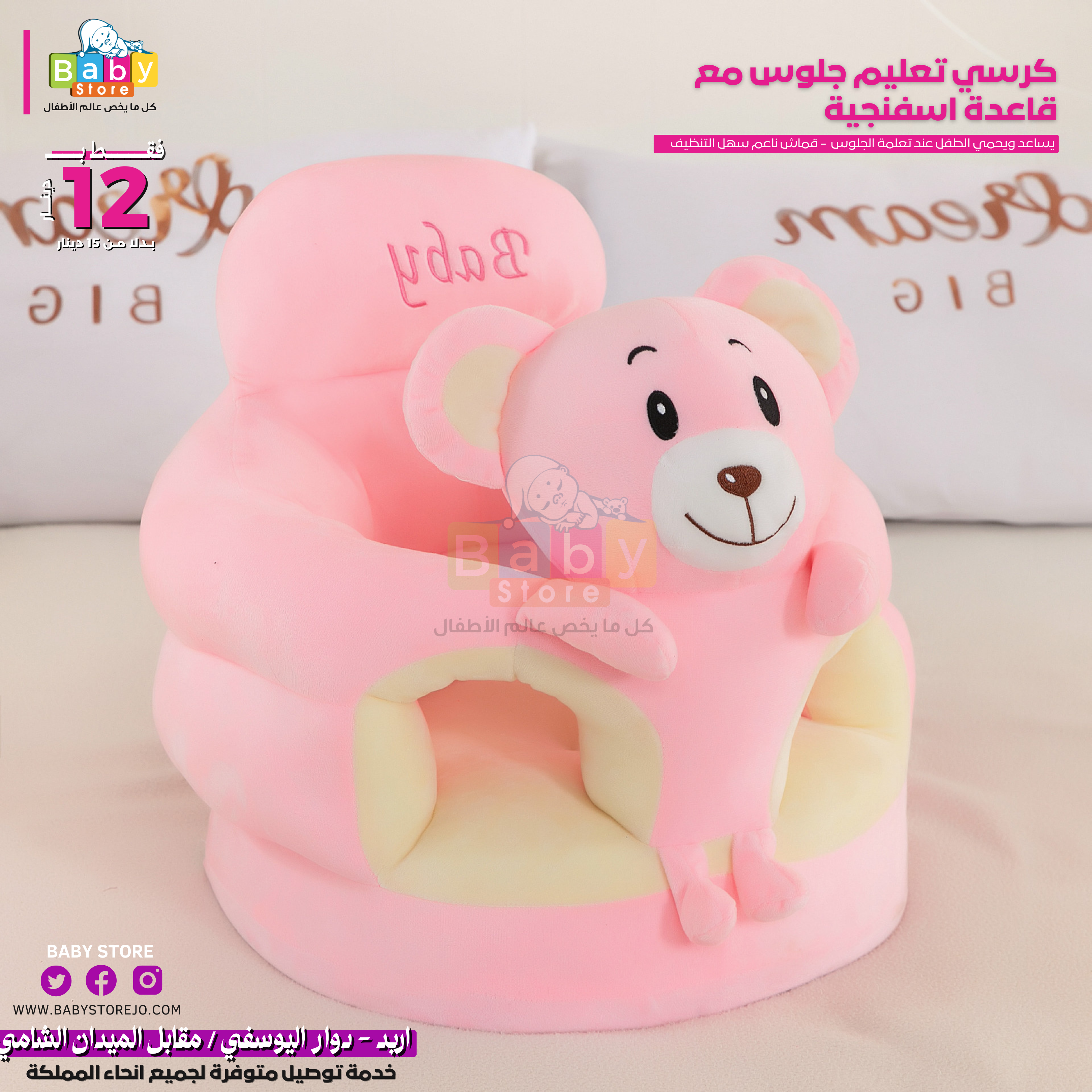 مقعد أطفال رائع مع شخصيات كرتونية مطرزة يوفر راحة فائقة ويساعدهم في الحفاظ على وضعية جلوس مستقرة. مع تصميم يحيط بالطفل بشكل آمن وقاعدة المقعد المرفقة، فإنه يضمن سلامتهم ويمنعهم من الانزلاق على الأرض أثناء تعلمهم الجلوس