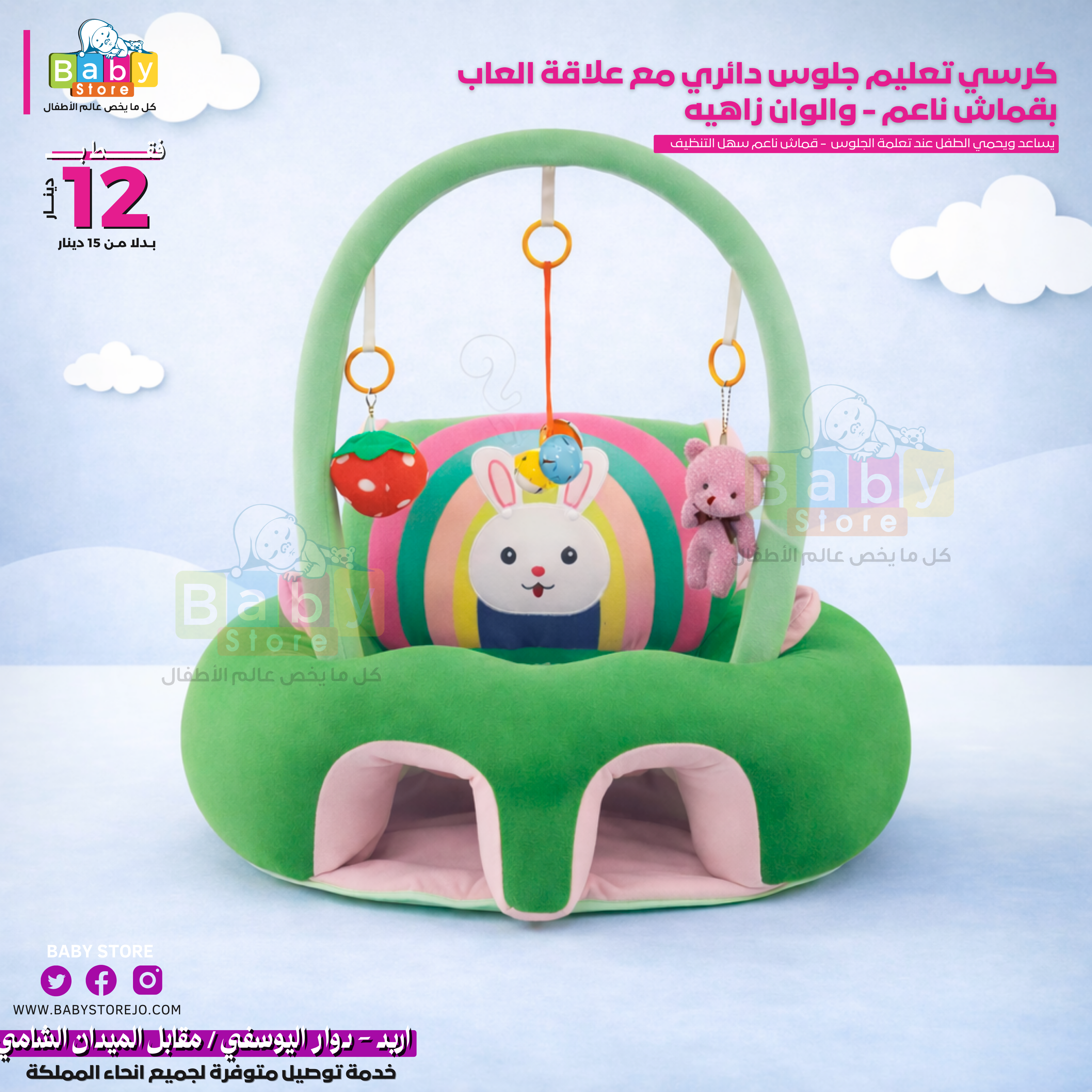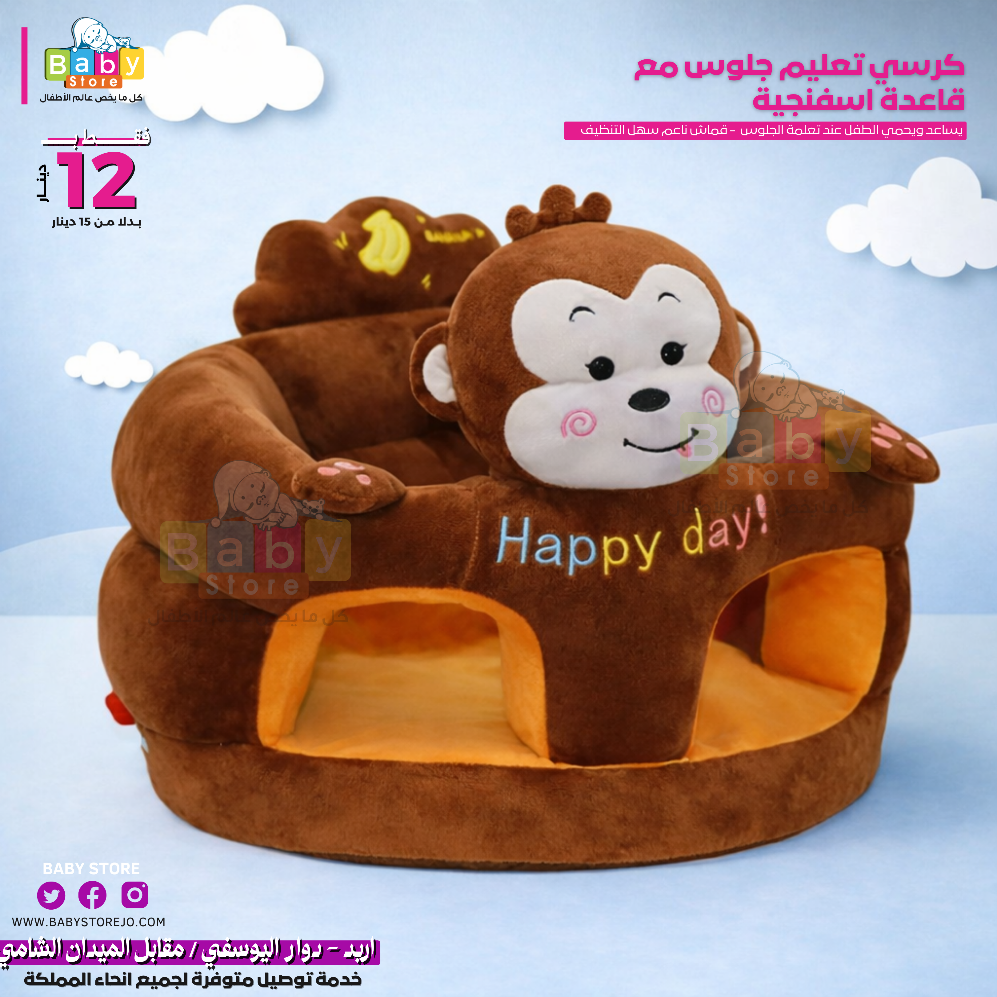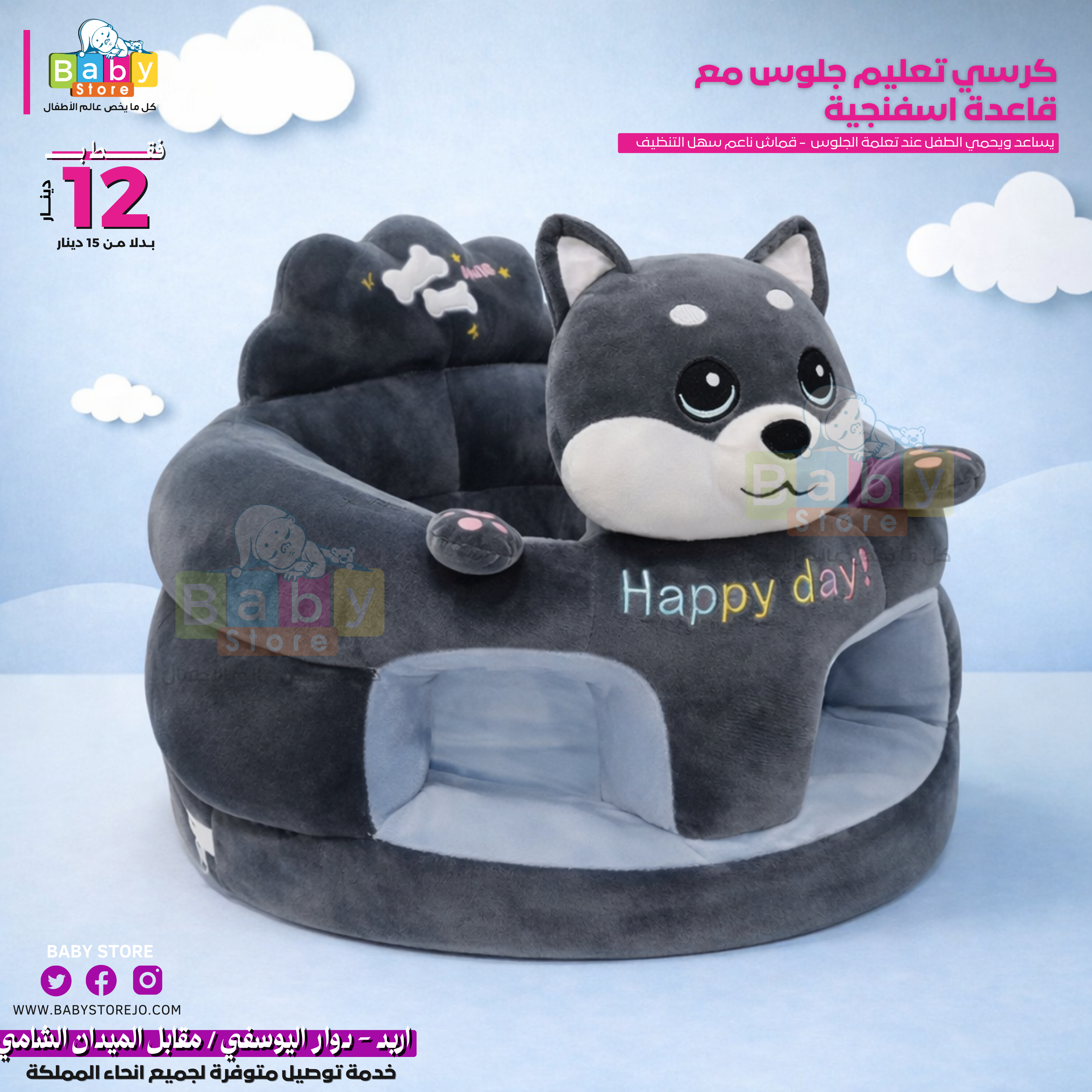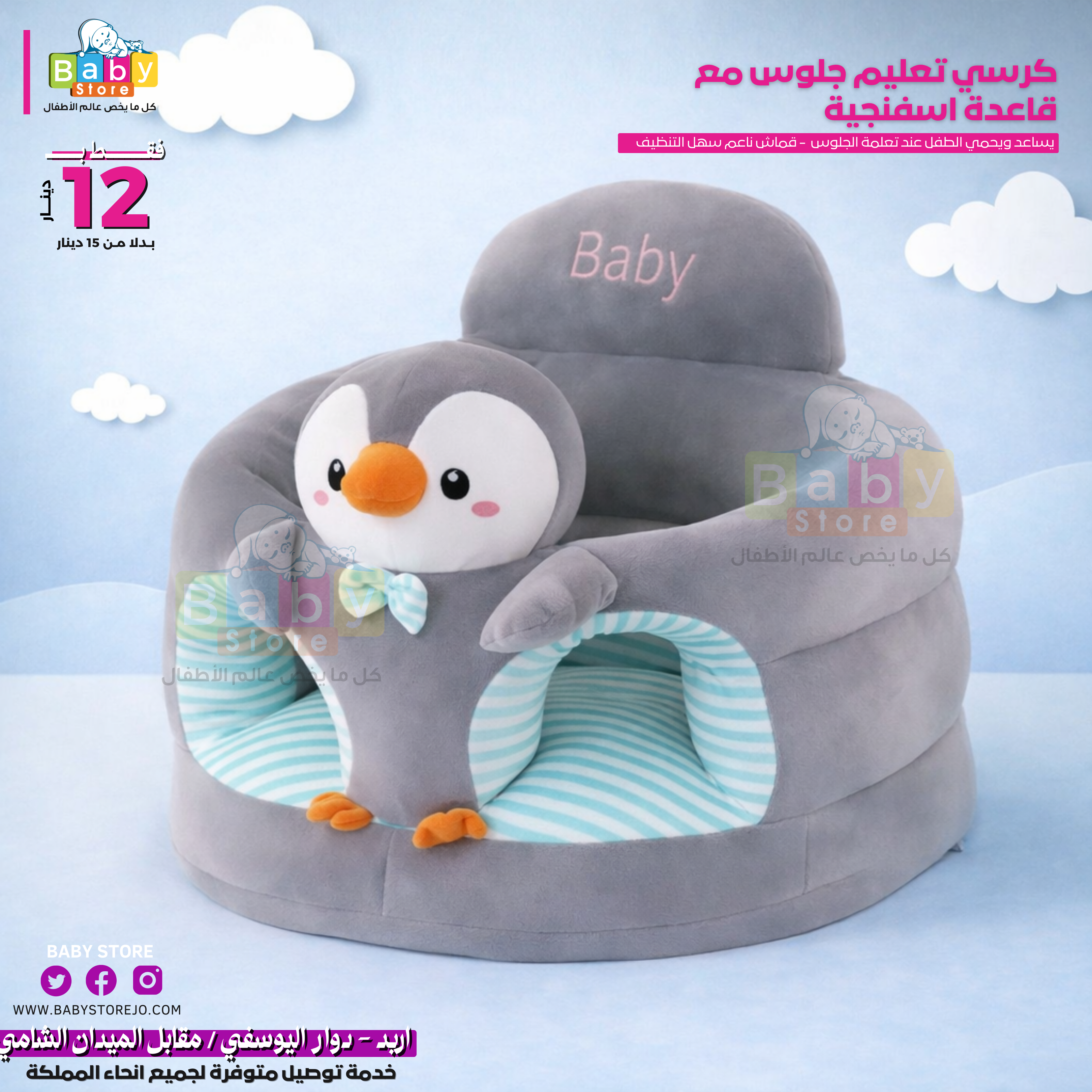 مقعد أطفال رائع مع شخصيات كرتونية مطرزة يوفر راحة فائقة ويساعدهم في الحفاظ على وضعية جلوس مستقرة. مع تصميم يحيط بالطفل بشكل آمن وقاعدة المقعد المرفقة، فإنه يضمن سلامتهم ويمنعهم من الانزلاق على الأرض أثناء تعلمهم الجلوس