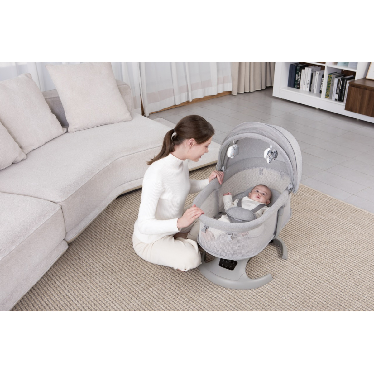 يأتي الهزّاز مزودًا بـ علاقة ألعاب تفاعلية تساعد على تحفيز الطفل وتنمية مهاراته الحسية، إضافة إلى فرش ناعم ومريح يوفر تجربة نوم هادئة.
